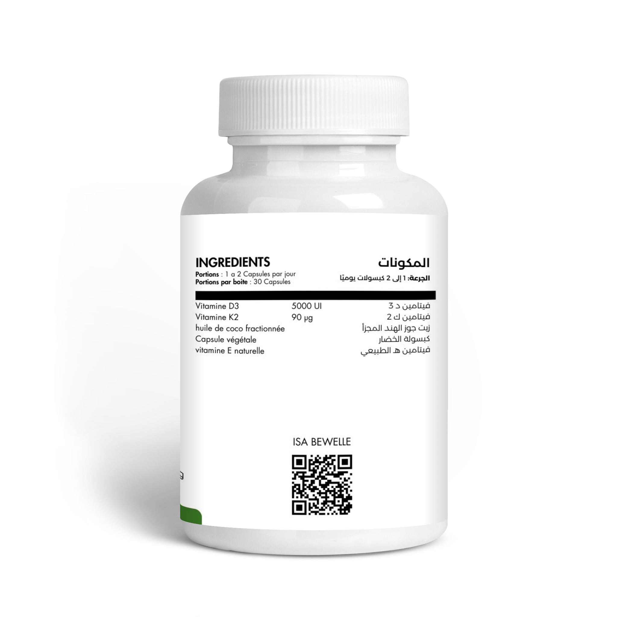 وصف: مكمل غذائي يجمع بين فيتامين D3 وفيتامين K2 لدعم صحة العظام والقلب.